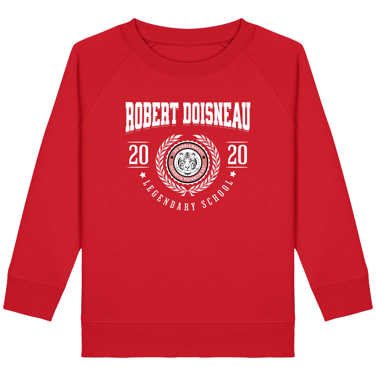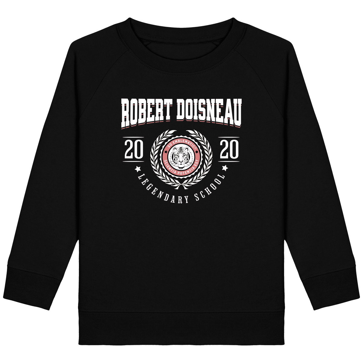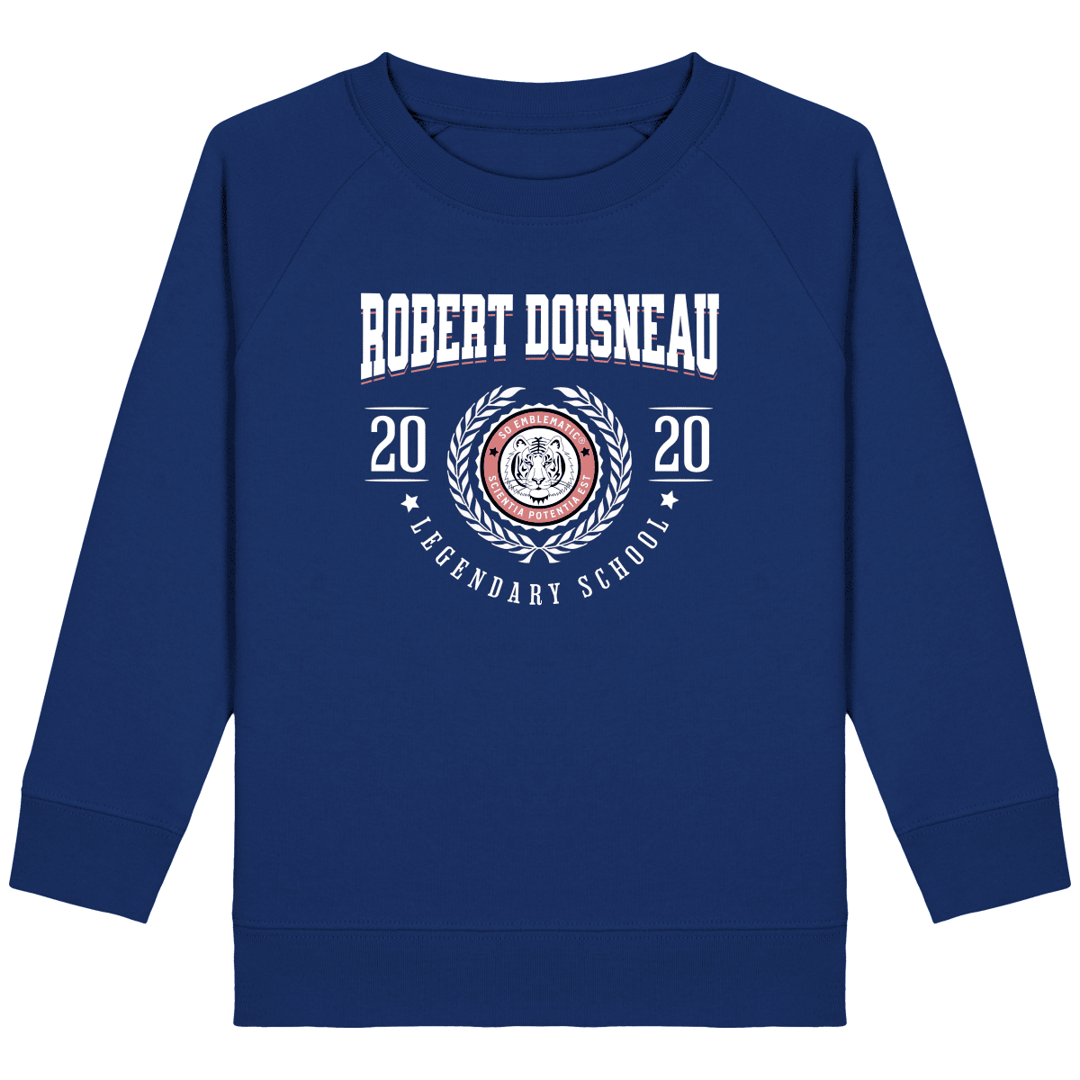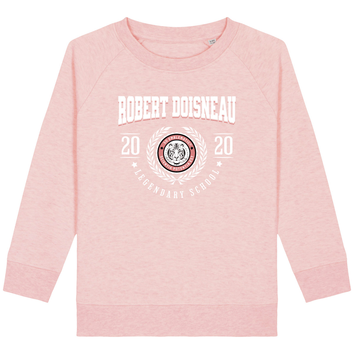 Sweat Enfant University ROBERT DOISNEAU. Sweat enfant col rond en coton BIO de la marque STANLEY STELLA. Manches raglan, Col en côte 1×1. Bande de propreté intérieur col en jersey. 1/2 lune intérieur col dans la matière principale, Côte 1×1 au bas de manches et bas de corps. Surpiqûre double aux emmanchures, bas de manches et bas de corps. Sweat intérieur en molleton non brossé (non duveteux). 85% coton biologique filé et peigné, 15% polyester recyclé. Coupe normale du 3/4 ans au 12/14 ans. 300 G/M².