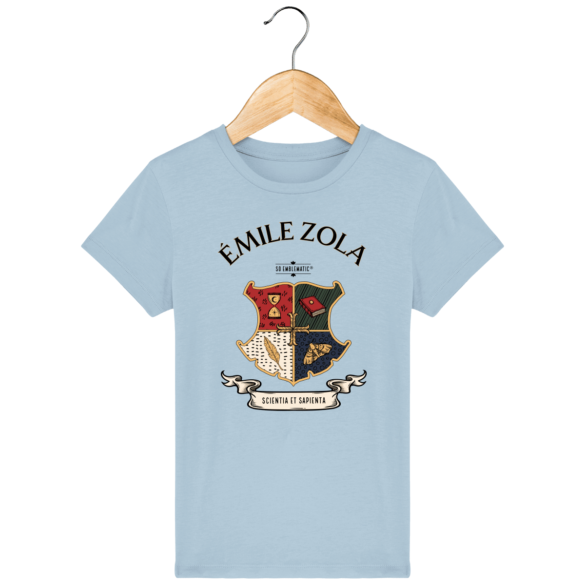 Tee Shirt Enfant Bio BLASON ECOLE EMILE ZOLA. T-shirt enfant iconique de la marque premium de mode éthique Stanley Stella. T-shirt enfant manches montées, col en côte 1×1, bande de propreté intérieur col dans la matière principale et surpiqûre double étroite en bas de manche et bas de corps. Composé de Jersey simple 100% COTON BIOLOGIQUE filé et peigné. Coupe normale. Grammage de 155 G/M².