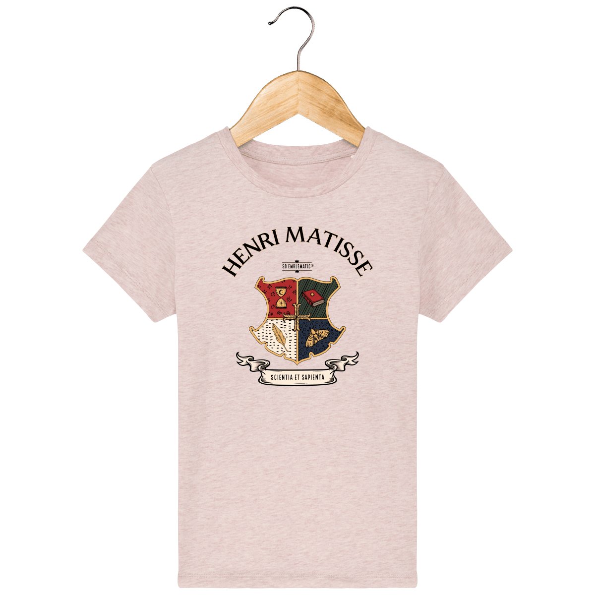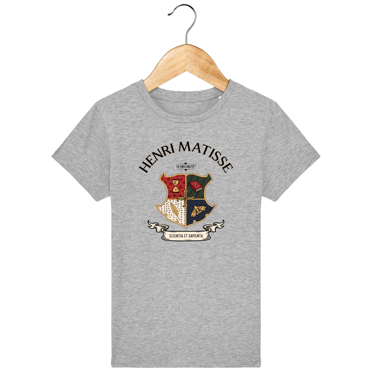 Tee Shirt Enfant Bio BLASON ECOLE HENRI MATISSE. T-shirt enfant iconique de la marque premium de mode éthique Stanley Stella. T-shirt enfant manches montées, col en côte 1×1, bande de propreté intérieur col dans la matière principale et surpiqûre double étroite en bas de manche et bas de corps. Composé de Jersey simple 100% COTON BIOLOGIQUE filé et peigné. Coupe normale. Grammage de 155 G/M².