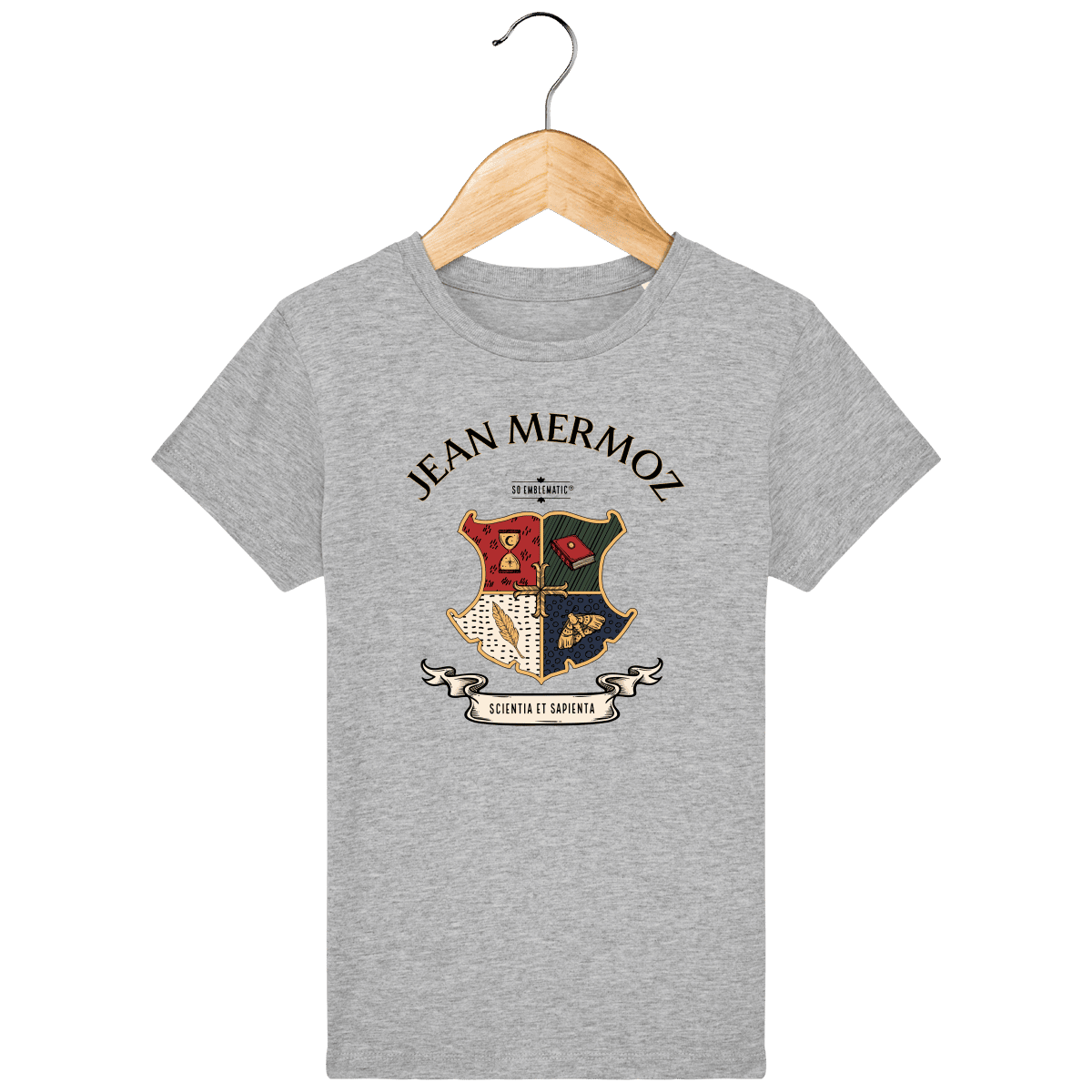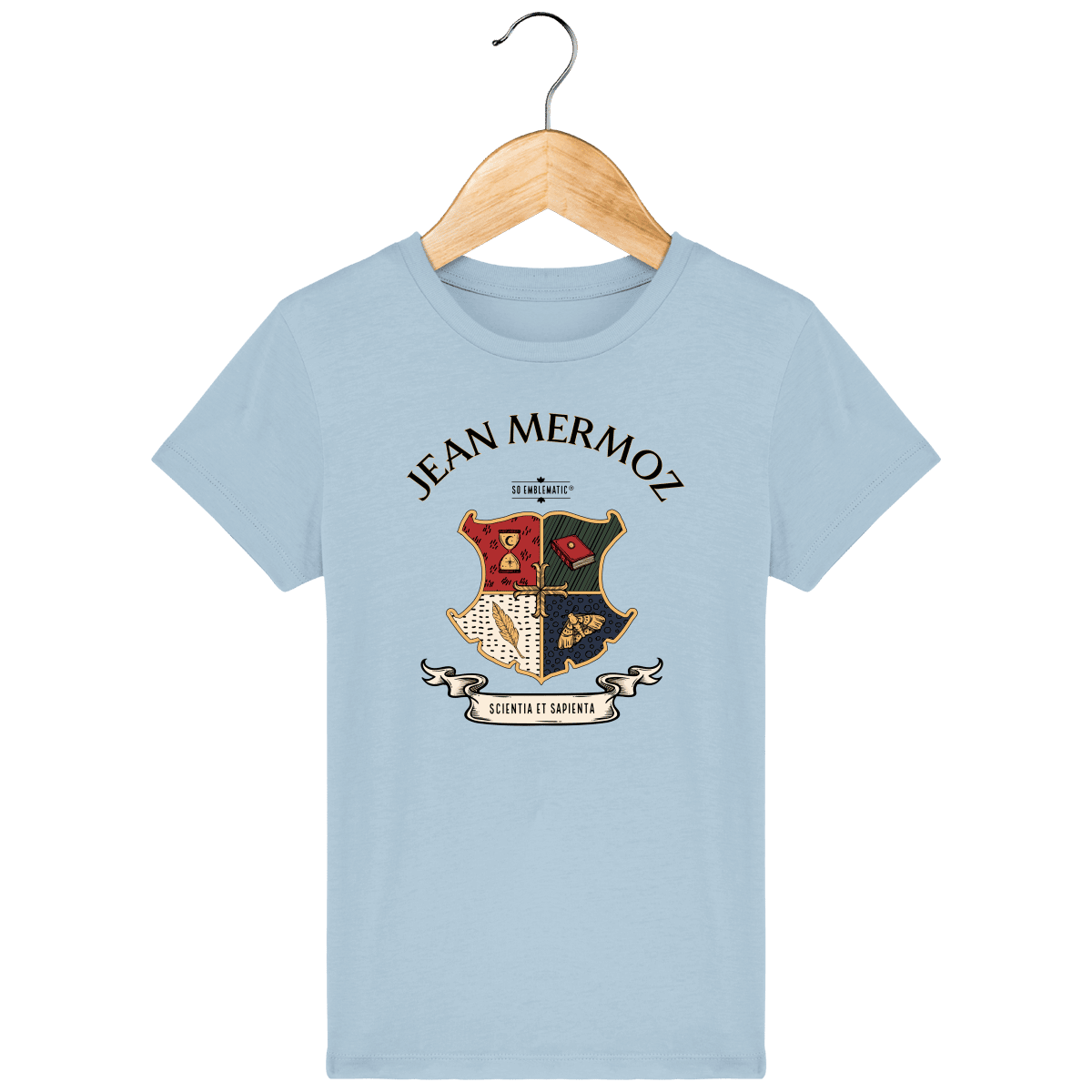 Tee Shirt Enfant Bio BLASON ECOLE JEAN MERMOZ. T-shirt enfant iconique de la marque premium de mode éthique Stanley Stella. T-shirt enfant manches montées, col en côte 1×1, bande de propreté intérieur col dans la matière principale et surpiqûre double étroite en bas de manche et bas de corps. Composé de Jersey simple 100% COTON BIOLOGIQUE filé et peigné. Coupe normale. Grammage de 155 G/M².