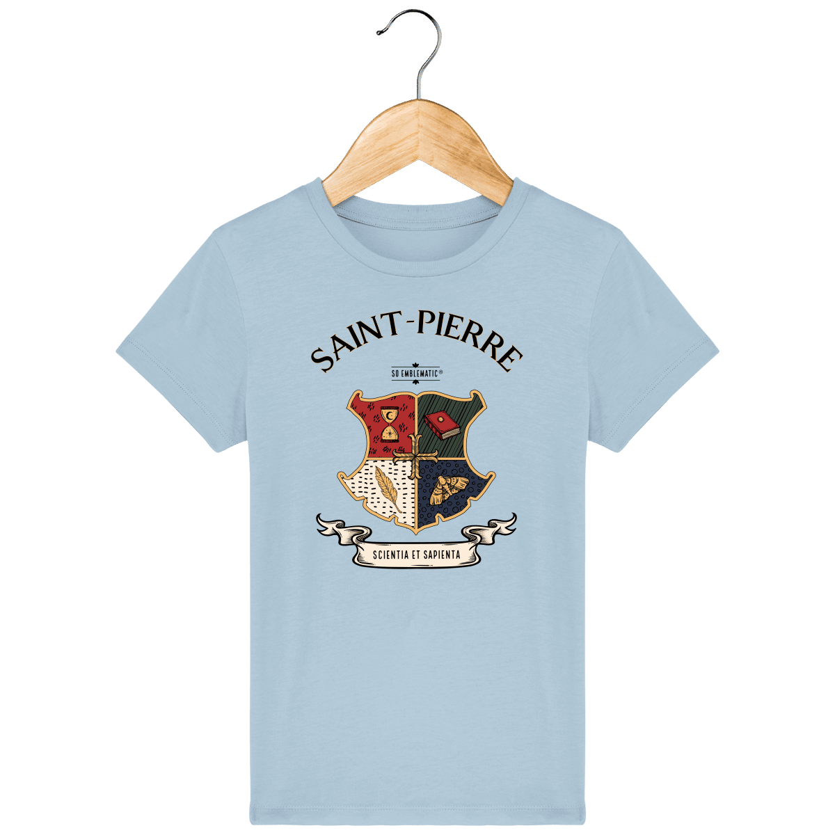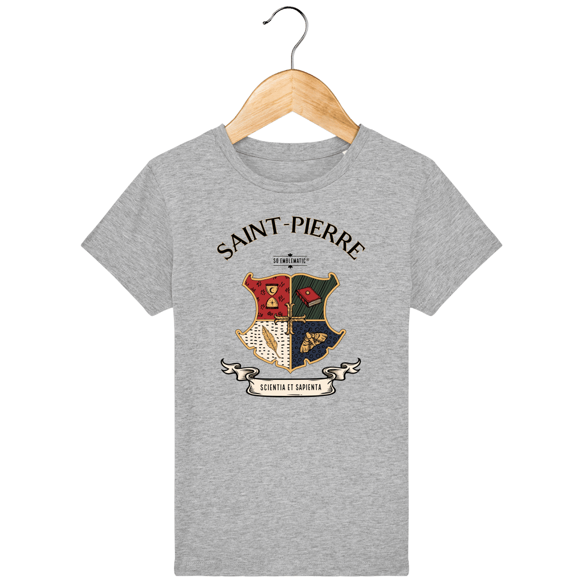 Tee Shirt Enfant Bio BLASON ECOLE SAINT-PIERRE. T-shirt enfant iconique de la marque premium de mode éthique Stanley Stella. T-shirt enfant manches montées, col en côte 1×1, bande de propreté intérieur col dans la matière principale et surpiqûre double étroite en bas de manche et bas de corps. Composé de Jersey simple 100% COTON BIOLOGIQUE filé et peigné. Coupe normale. Grammage de 155 G/M².