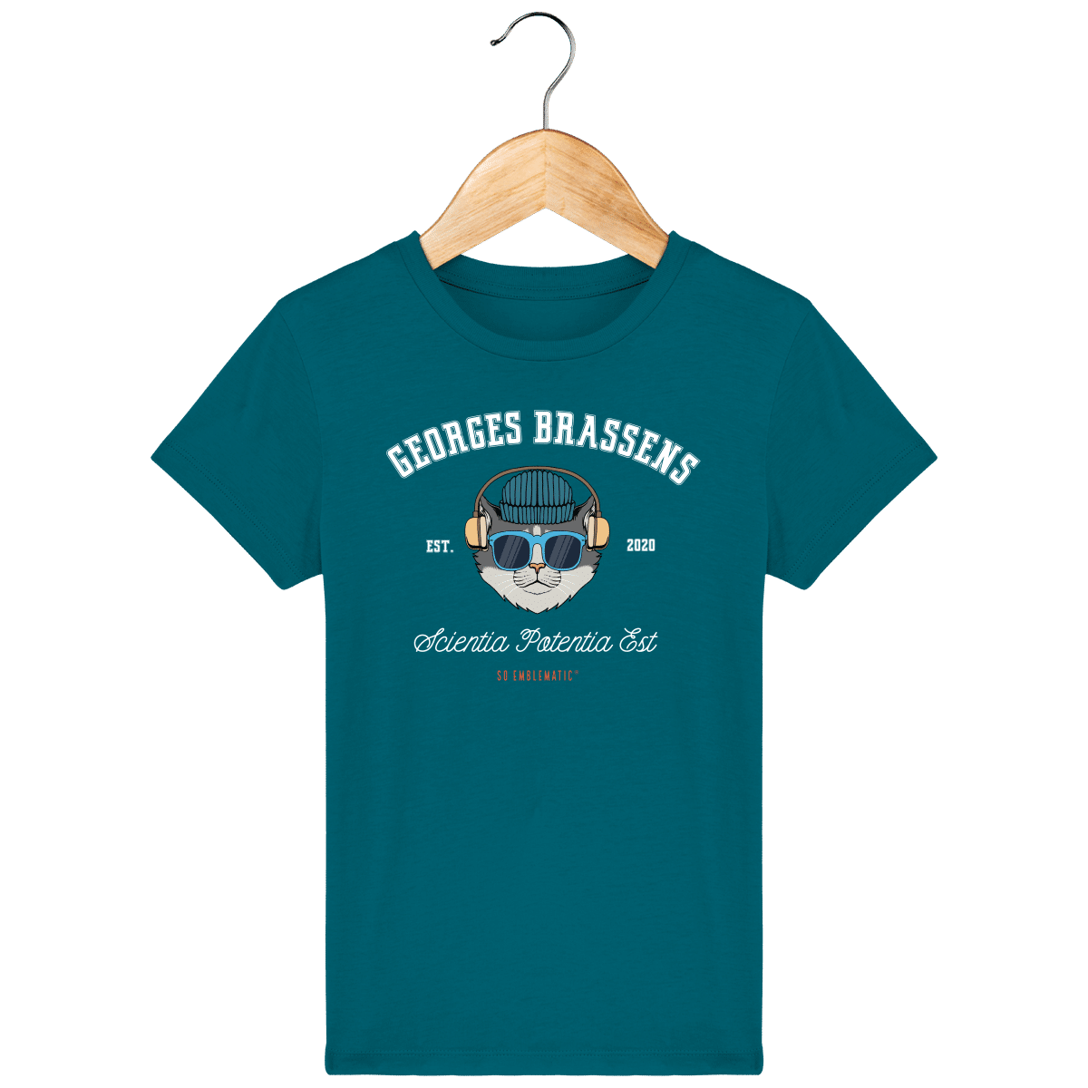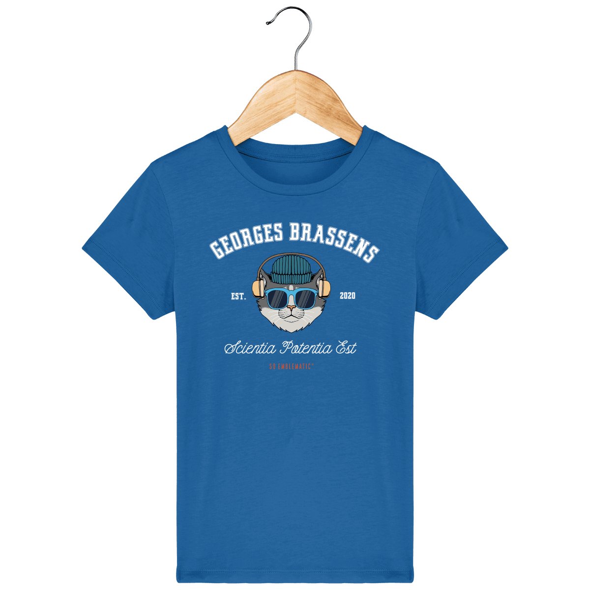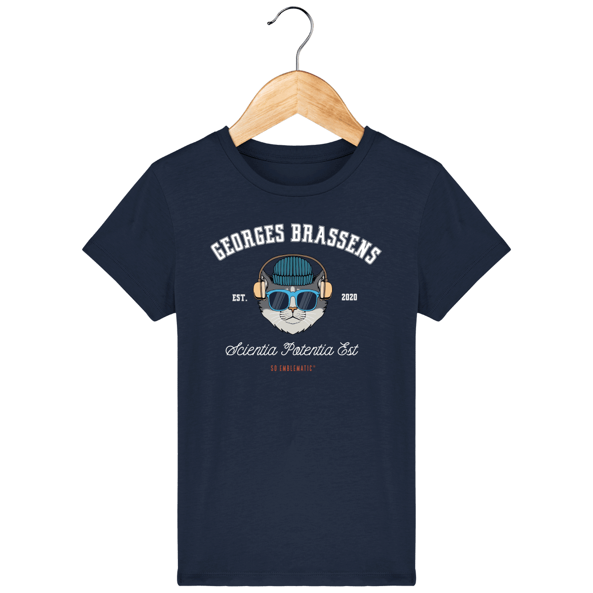 Tee Shirt Enfant Bio CHAT GEORGES BRASSENS. T-shirt enfant iconique de la marque premium de mode éthique Stanley Stella. T-shirt enfant manches montées, col en côte 1×1, bande de propreté intérieur col dans la matière principale et surpiqûre double étroite en bas de manche et bas de corps. Composé de Jersey simple 100% COTON BIOLOGIQUE filé et peigné. Coupe normale. Grammage de 155 G/M².