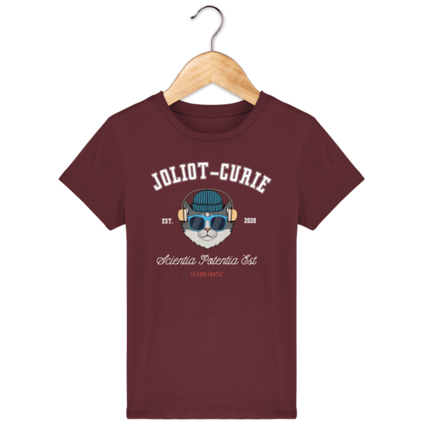 Tee Shirt Enfant Bio CHAT JOLIOT-CURIE. T-shirt enfant iconique de la marque premium de mode éthique Stanley Stella. T-shirt enfant manches montées, col en côte 1×1, bande de propreté intérieur col dans la matière principale et surpiqûre double étroite en bas de manche et bas de corps. Composé de Jersey simple 100% COTON BIOLOGIQUE filé et peigné. Coupe normale. Grammage de 155 G/M².