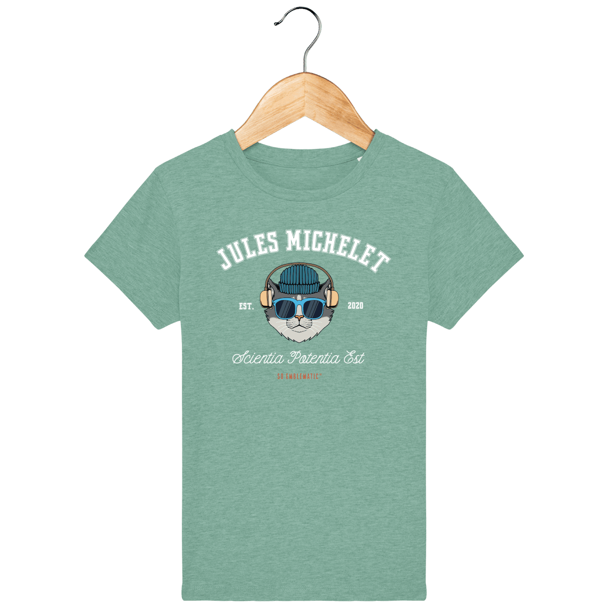 Tee Shirt Enfant Bio CHAT JULES MICHELET. T-shirt enfant iconique de la marque premium de mode éthique Stanley Stella. T-shirt enfant manches montées, col en côte 1×1, bande de propreté intérieur col dans la matière principale et surpiqûre double étroite en bas de manche et bas de corps. Composé de Jersey simple 100% COTON BIOLOGIQUE filé et peigné. Coupe normale. Grammage de 155 G/M².