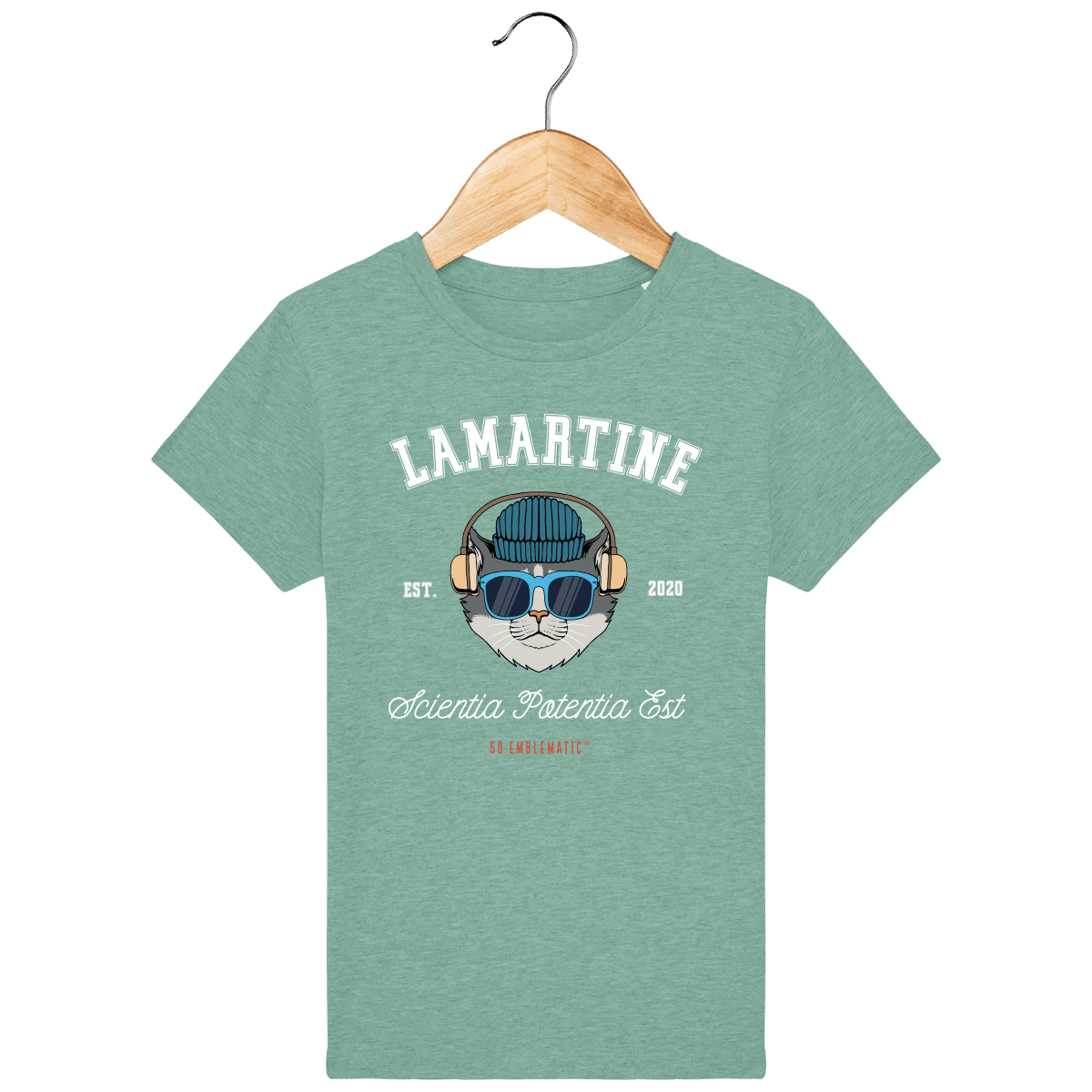 Tee Shirt Enfant Bio CHAT LARMARTINE. T-shirt enfant iconique de la marque premium de mode éthique Stanley Stella. T-shirt enfant manches montées, col en côte 1×1, bande de propreté intérieur col dans la matière principale et surpiqûre double étroite en bas de manche et bas de corps. Composé de Jersey simple 100% COTON BIOLOGIQUE filé et peigné. Coupe normale. Grammage de 155 G/M².