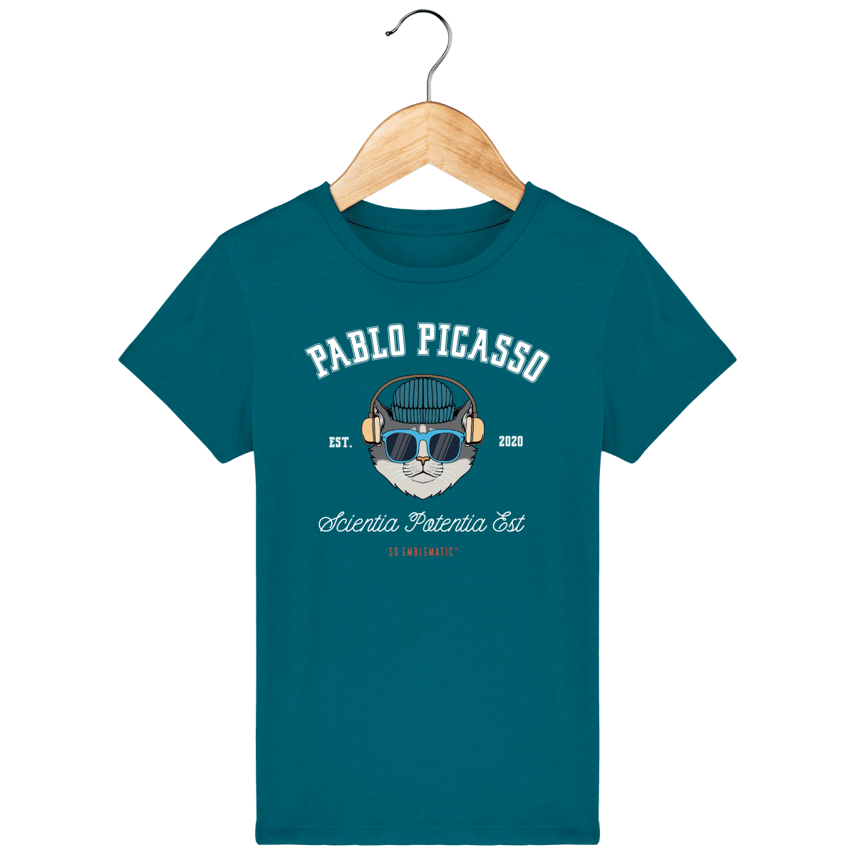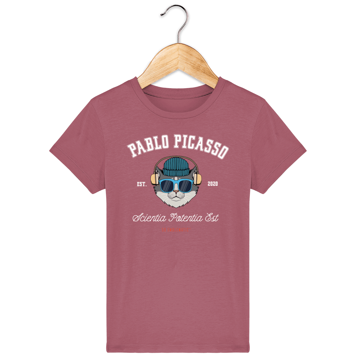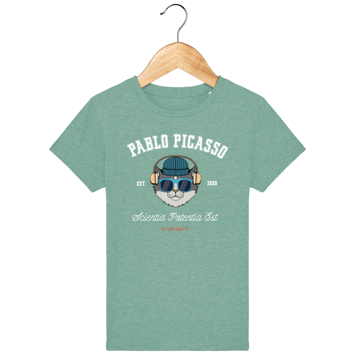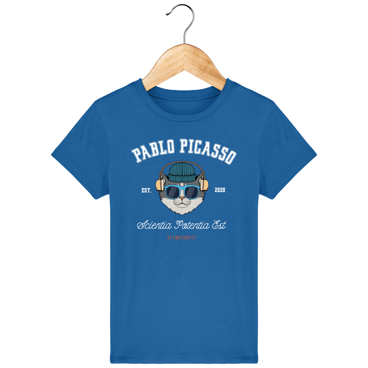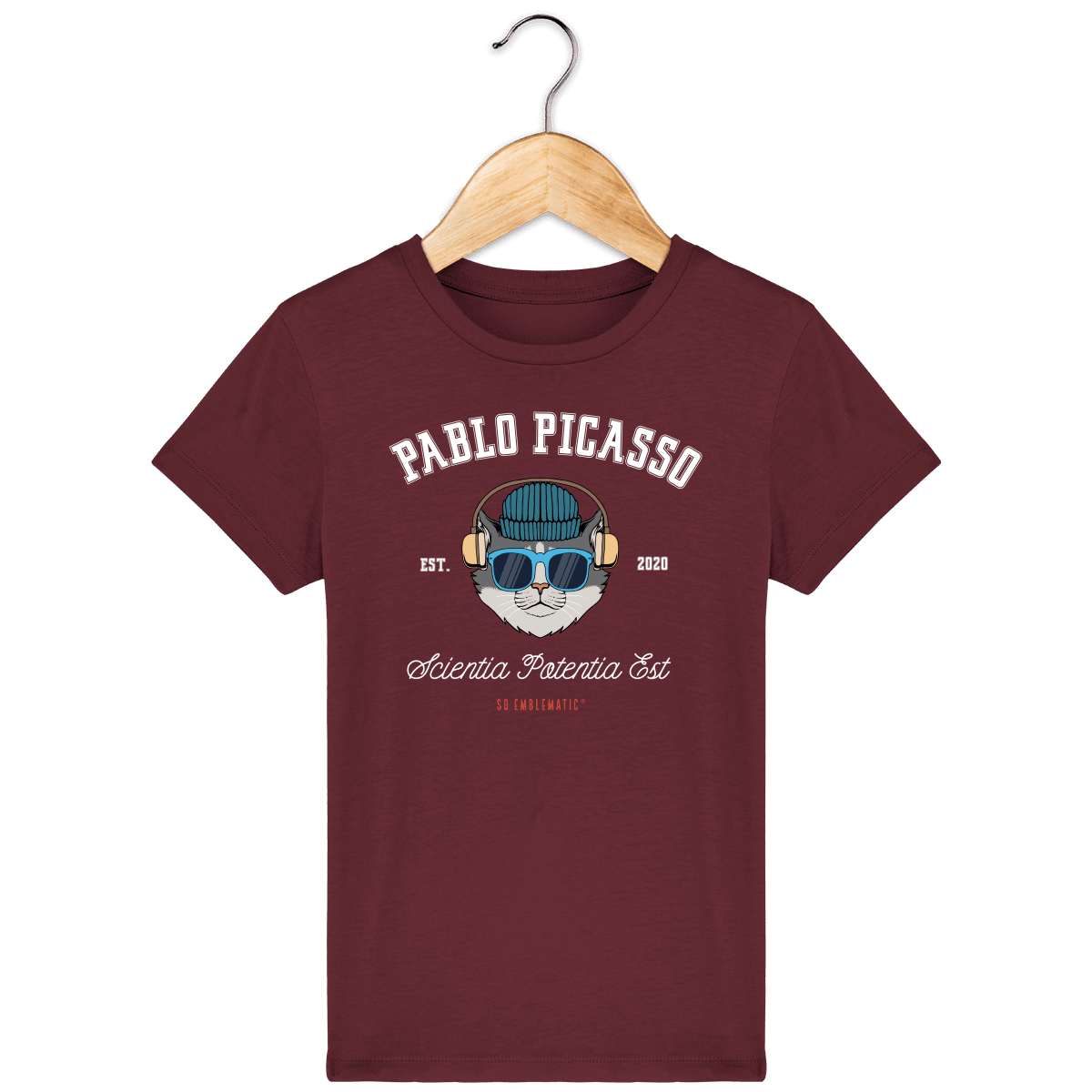 Tee Shirt Enfant Bio CHAT PABLO PICASSO. T-shirt enfant iconique de la marque premium de mode éthique Stanley Stella. T-shirt enfant manches montées, col en côte 1×1, bande de propreté intérieur col dans la matière principale et surpiqûre double étroite en bas de manche et bas de corps. Composé de Jersey simple 100% COTON BIOLOGIQUE filé et peigné. Coupe normale. Grammage de 155 G/M².