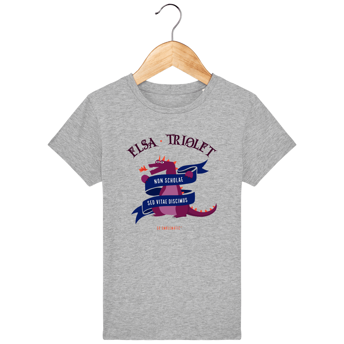 Tee Shirt Enfant Bio Dragon ELSA TRIOLET. T-shirt enfant iconique de la marque premium de mode éthique Stanley Stella. T-shirt enfant manches montées, col en côte 1×1, bande de propreté intérieur col dans la matière principale et surpiqûre double étroite en bas de manche et bas de corps. Composé de Jersey simple 100% COTON BIOLOGIQUE filé et peigné. Coupe normale. Grammage de 155 G/M².