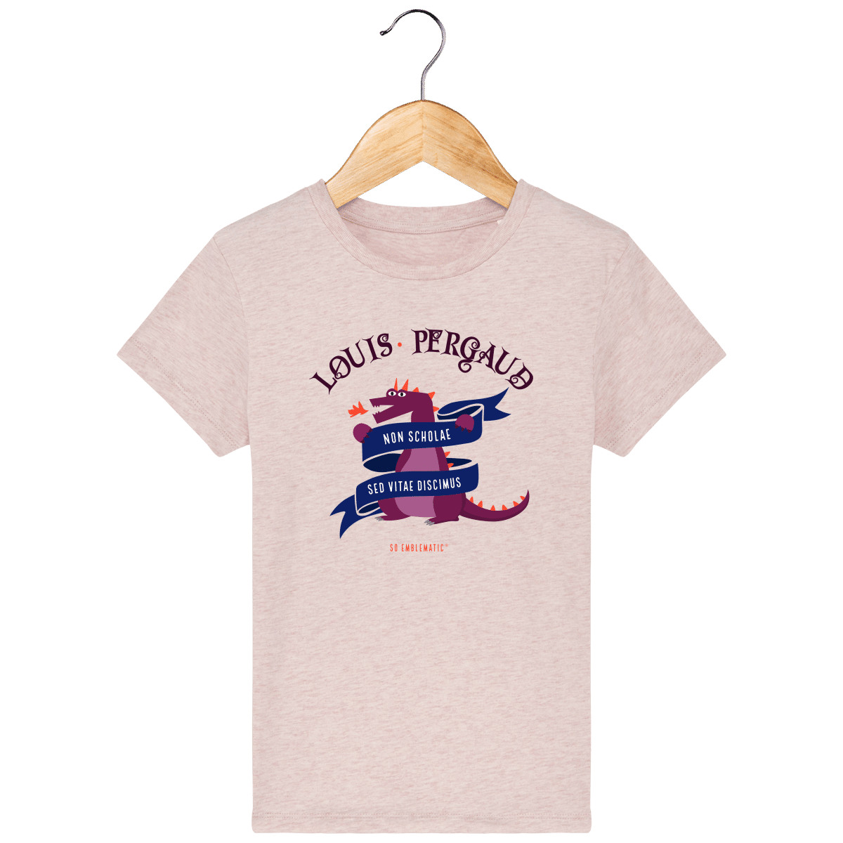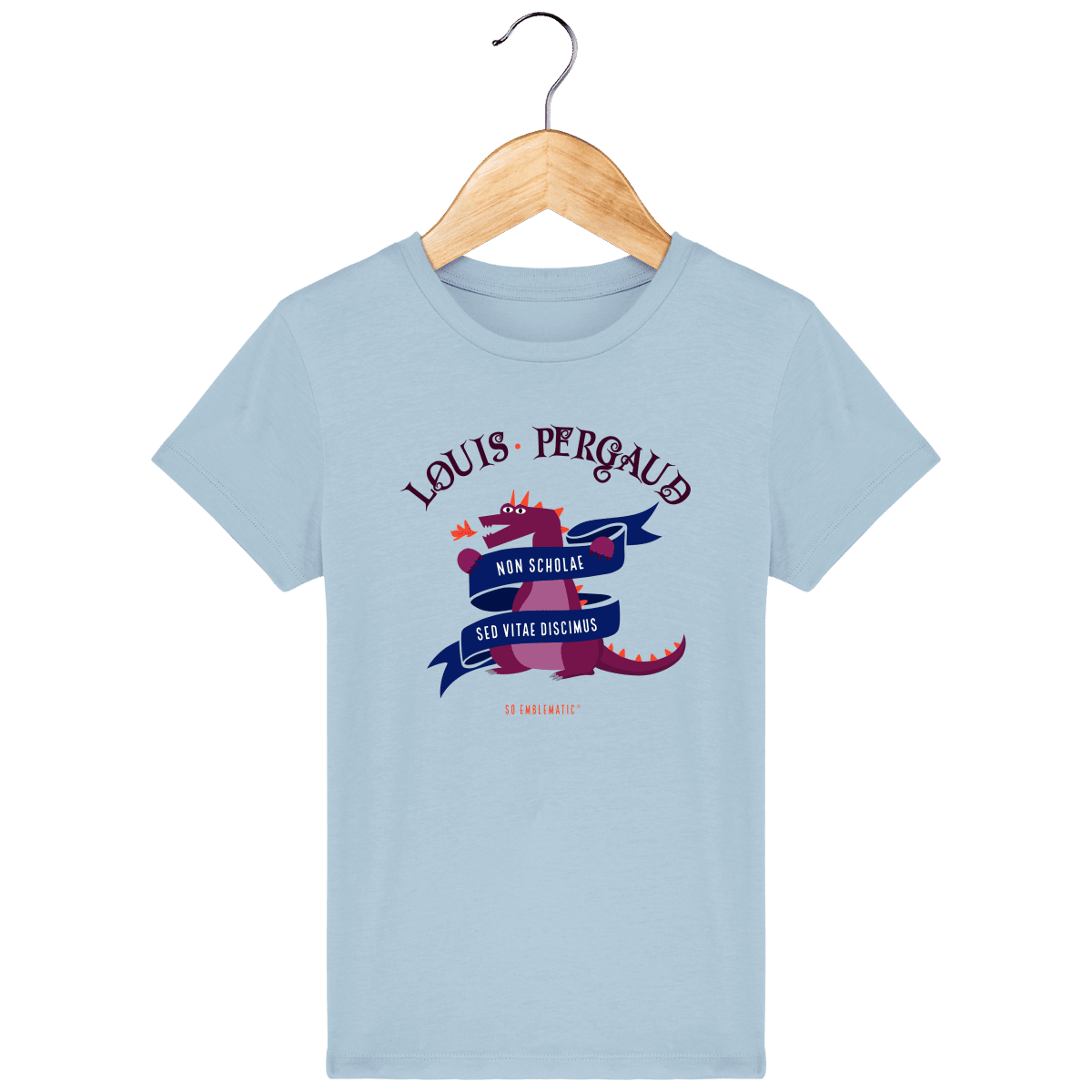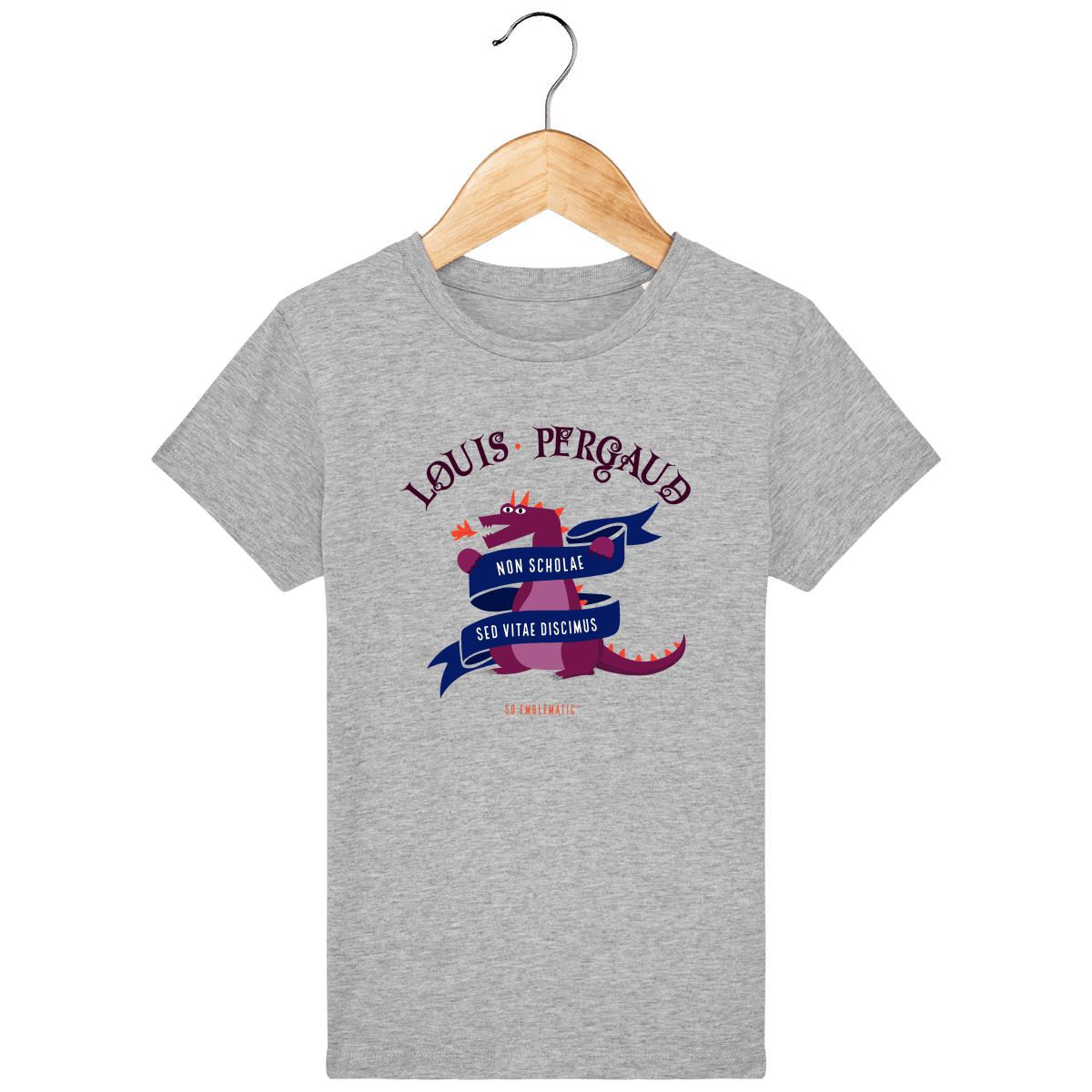 Tee Shirt Enfant Bio Dragon LOUIS PERGAUD. T-shirt enfant iconique de la marque premium de mode éthique Stanley Stella. T-shirt enfant manches montées, col en côte 1×1, bande de propreté intérieur col dans la matière principale et surpiqûre double étroite en bas de manche et bas de corps. Composé de Jersey simple 100% COTON BIOLOGIQUE filé et peigné. Coupe normale. Grammage de 155 G/M².
