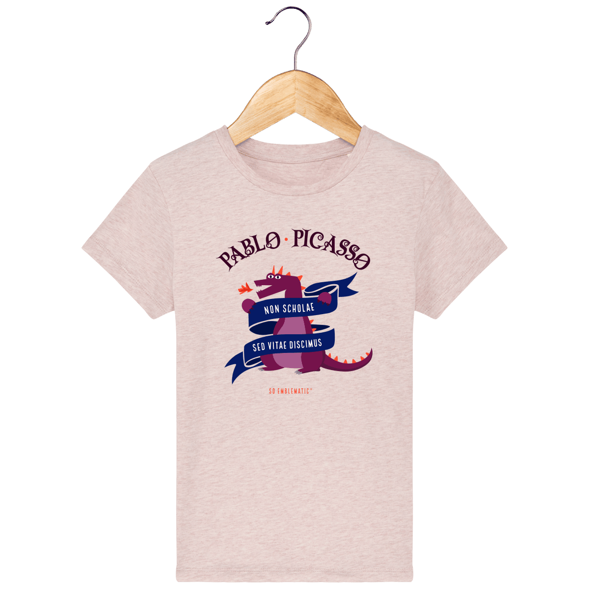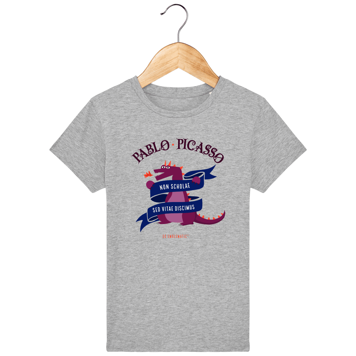 Tee Shirt Enfant Bio Dragon PABLO PICASSO. T-shirt enfant iconique de la marque premium de mode éthique Stanley Stella. T-shirt enfant manches montées, col en côte 1×1, bande de propreté intérieur col dans la matière principale et surpiqûre double étroite en bas de manche et bas de corps. Composé de Jersey simple 100% COTON BIOLOGIQUE filé et peigné. Coupe normale. Grammage de 155 G/M².