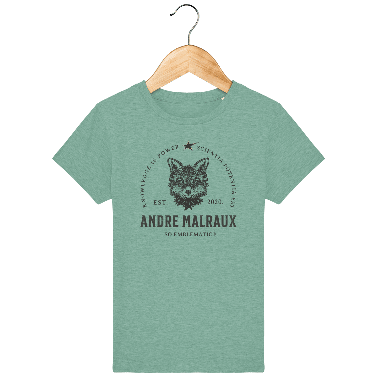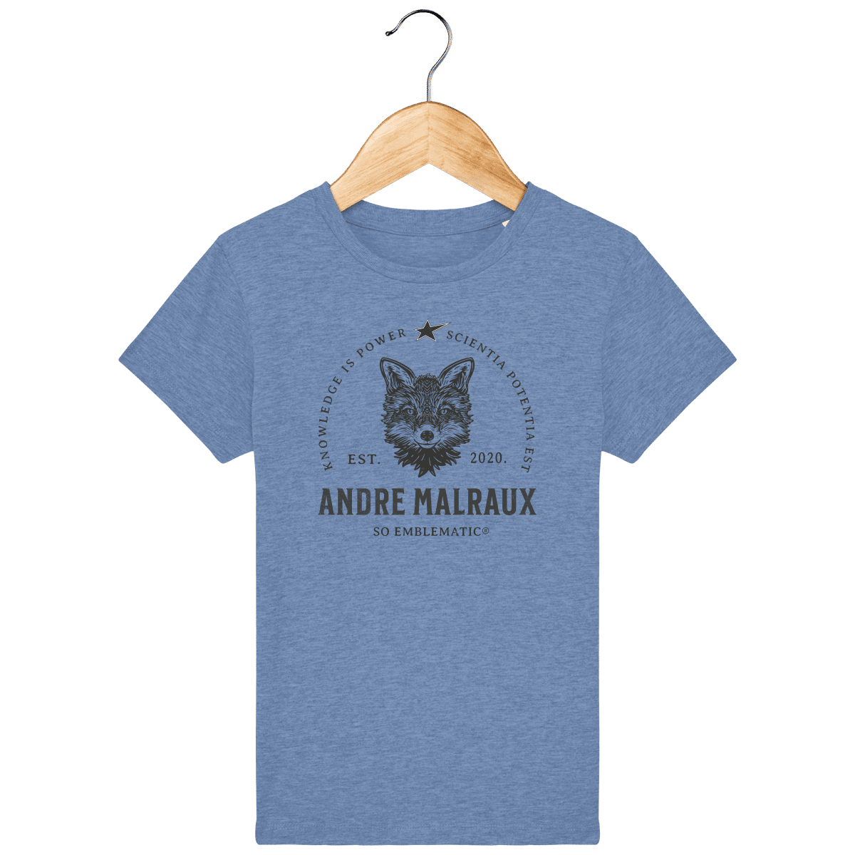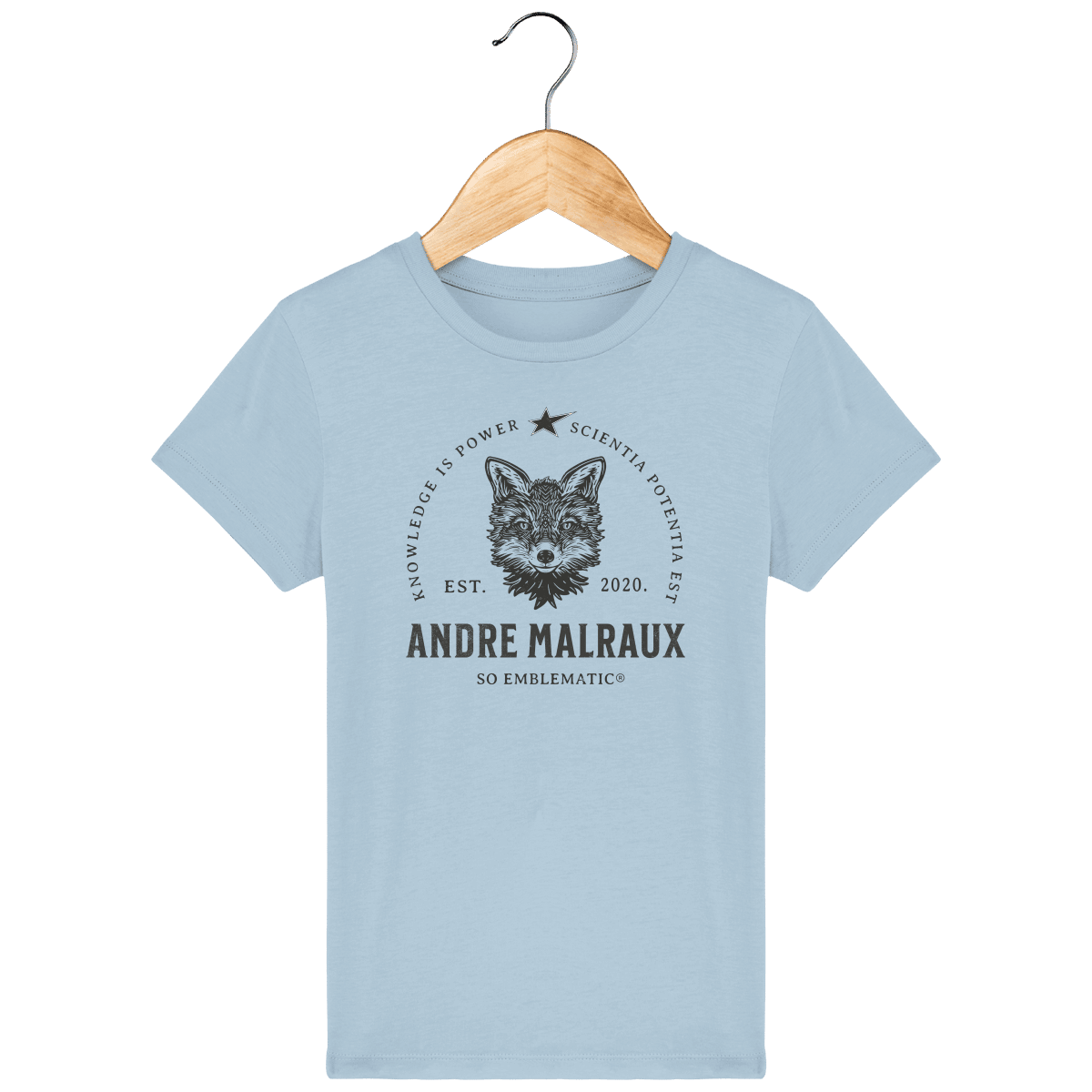 Tee Shirt Enfant Bio Renard ANDRE MALRAUX. T-shirt enfant iconique de la marque premium de mode éthique Stanley Stella. T-shirt enfant manches montées, col en côte 1×1, bande de propreté intérieur col dans la matière principale et surpiqûre double étroite en bas de manche et bas de corps. Composé de Jersey simple 100% COTON BIOLOGIQUE filé et peigné. Coupe normale. Grammage de 155 G/M².