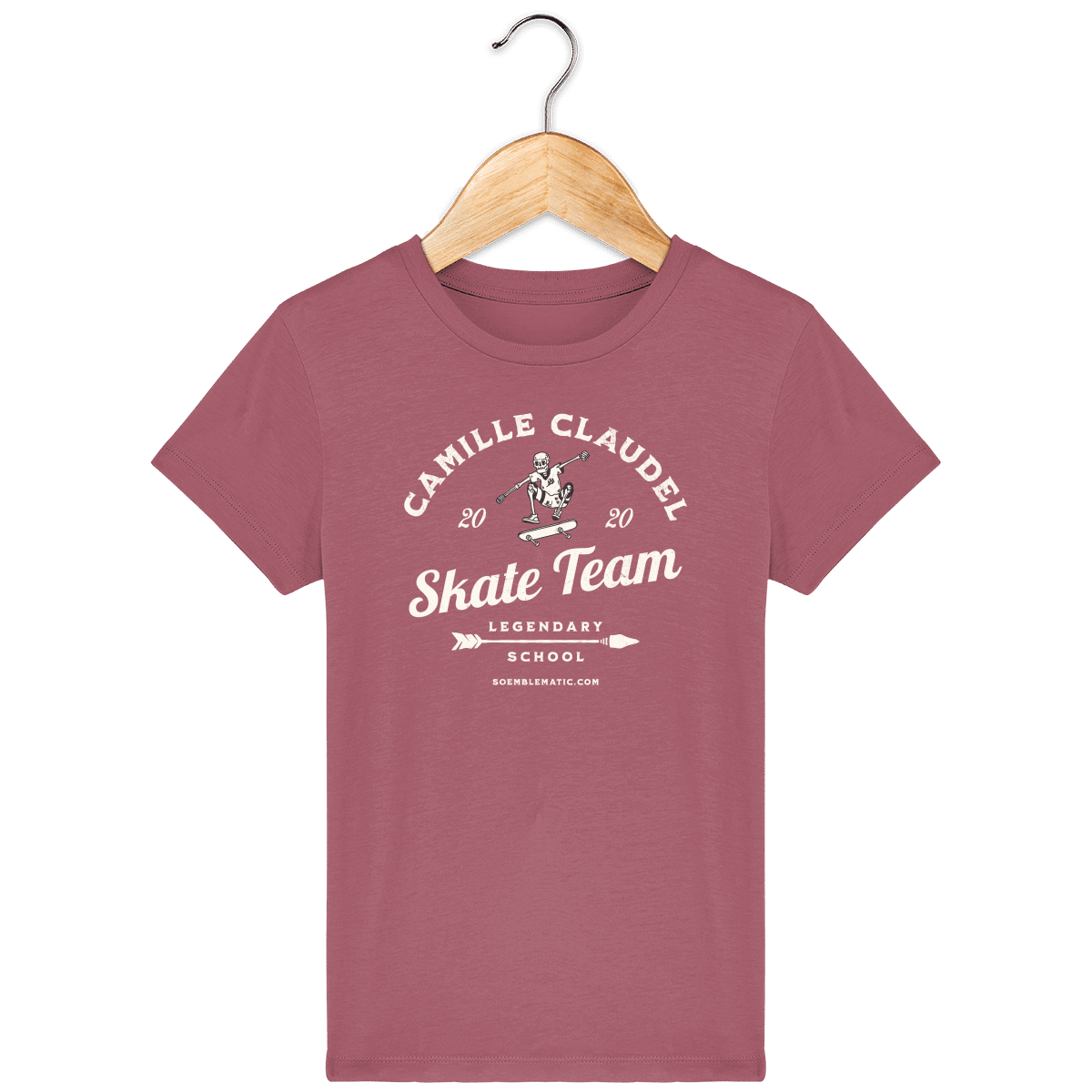 Tee Shirt Enfant Bio SKATE TEAM CAMILLE CLAUDEL. T-shirt enfant iconique de la marque premium de mode éthique Stanley Stella. T-shirt enfant manches montées, col en côte 1×1, bande de propreté intérieur col dans la matière principale et surpiqûre double étroite en bas de manche et bas de corps. Composé de Jersey simple 100% COTON BIOLOGIQUE filé et peigné. Coupe normale. Grammage de 155 G/M².
