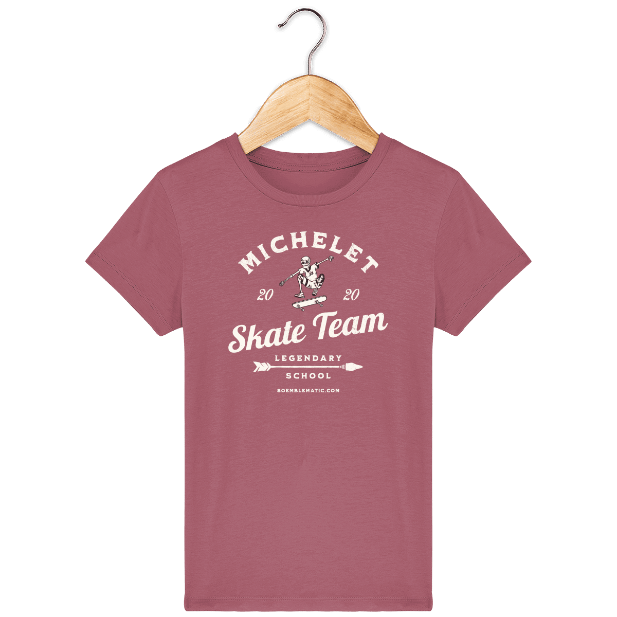 Tee Shirt Enfant Bio SKATE TEAM MICHELET. T-shirt enfant iconique de la marque premium de mode éthique Stanley Stella. T-shirt enfant manches montées, col en côte 1×1, bande de propreté intérieur col dans la matière principale et surpiqûre double étroite en bas de manche et bas de corps. Composé de Jersey simple 100% COTON BIOLOGIQUE filé et peigné. Coupe normale. Grammage de 155 G/M².