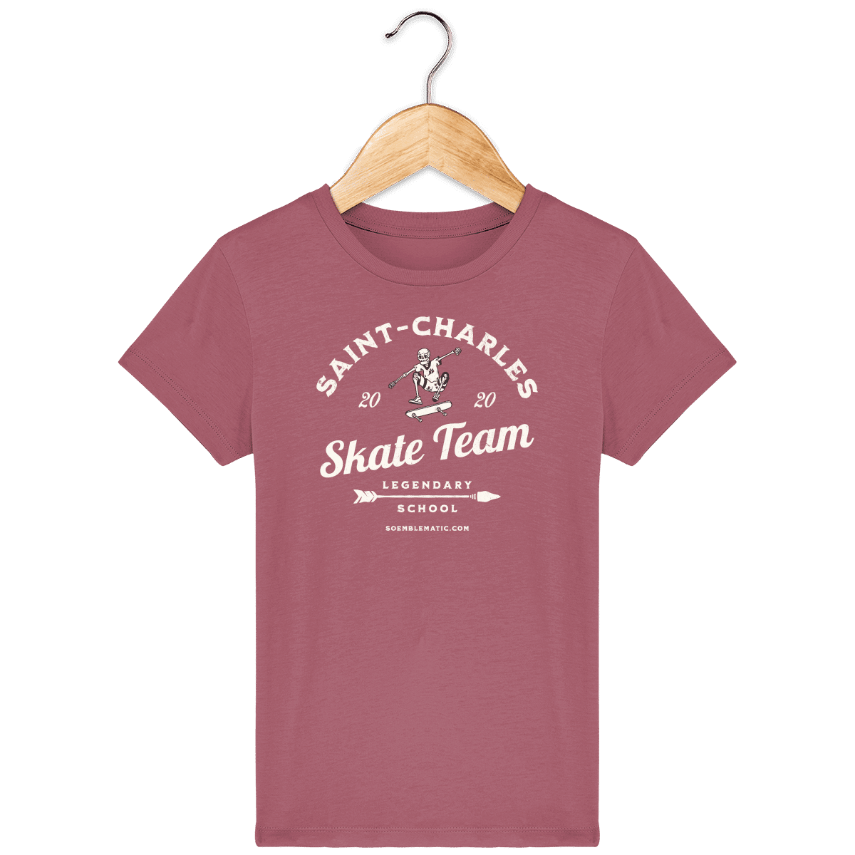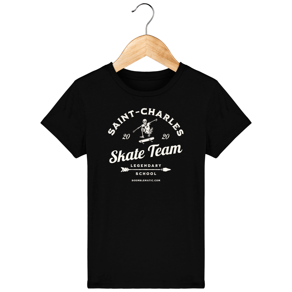 Tee Shirt Enfant Bio SKATE TEAM SAINT-CHARLES. T-shirt enfant iconique de la marque premium de mode éthique Stanley Stella. T-shirt enfant manches montées, col en côte 1×1, bande de propreté intérieur col dans la matière principale et surpiqûre double étroite en bas de manche et bas de corps. Composé de Jersey simple 100% COTON BIOLOGIQUE filé et peigné. Coupe normale. Grammage de 155 G/M².