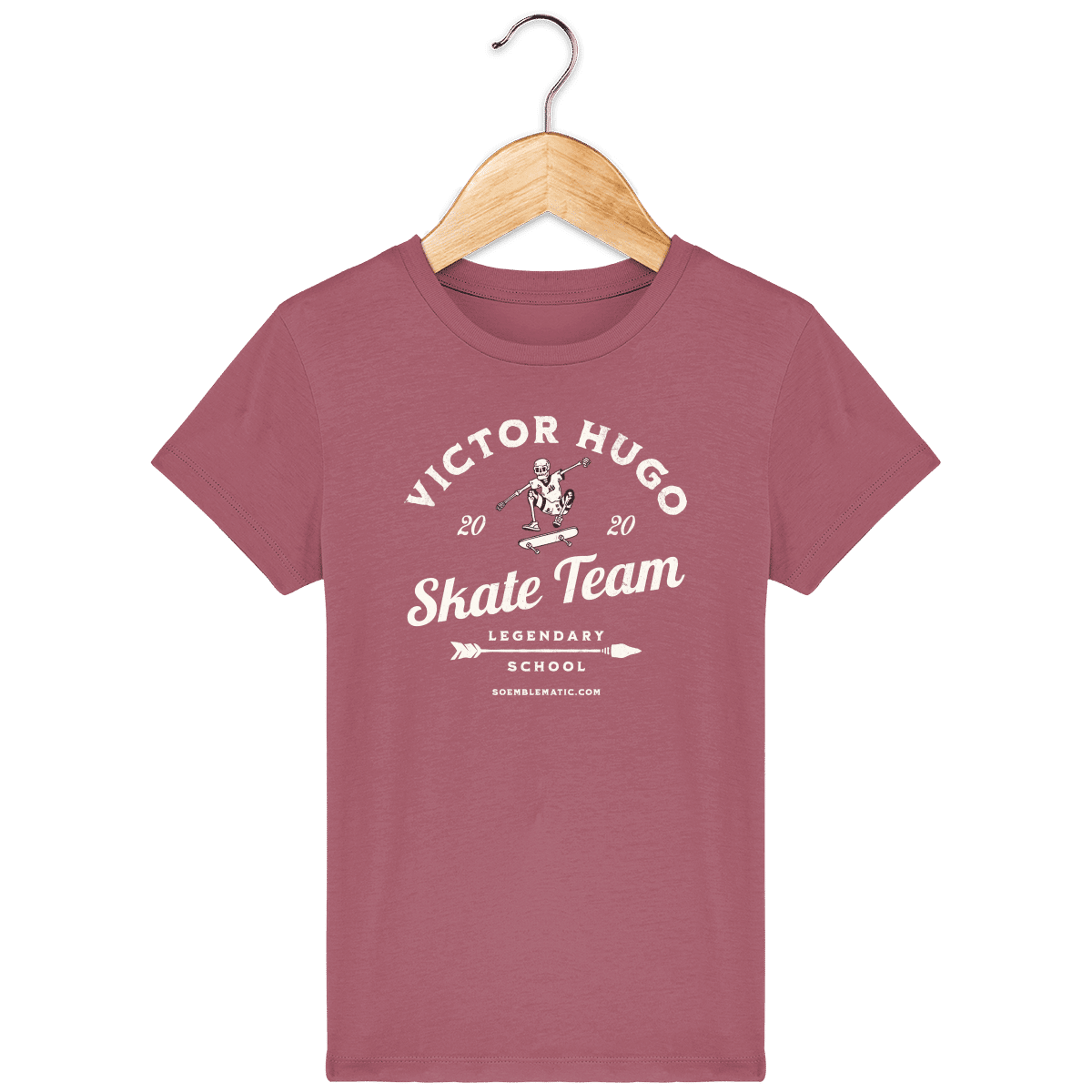Tee Shirt Enfant Bio SKATE TEAM VICTOR HUGO. T-shirt enfant iconique de la marque premium de mode éthique Stanley Stella. T-shirt enfant manches montées, col en côte 1×1, bande de propreté intérieur col dans la matière principale et surpiqûre double étroite en bas de manche et bas de corps. Composé de Jersey simple 100% COTON BIOLOGIQUE filé et peigné. Coupe normale. Grammage de 155 G/M².