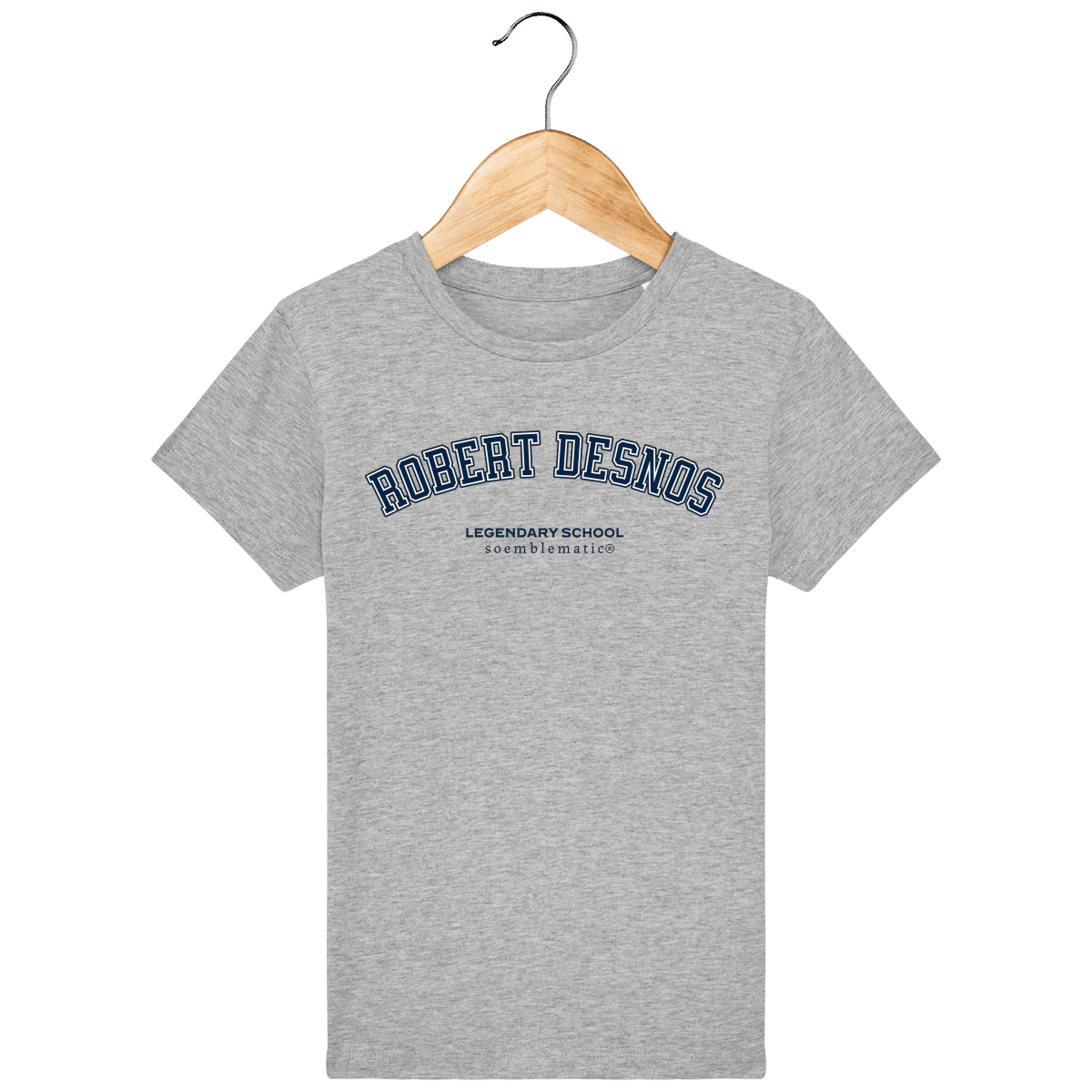 Tee Shirt Enfant Bio SPORT ROBERT DESNOS. T-shirt enfant iconique de la marque premium de mode éthique Stanley Stella. T-shirt enfant manches montées, col en côte 1×1, bande de propreté intérieur col dans la matière principale et surpiqûre double étroite en bas de manche et bas de corps. Composé de Jersey simple 100% COTON BIOLOGIQUE filé et peigné. Coupe normale. Grammage de 155 G/M².