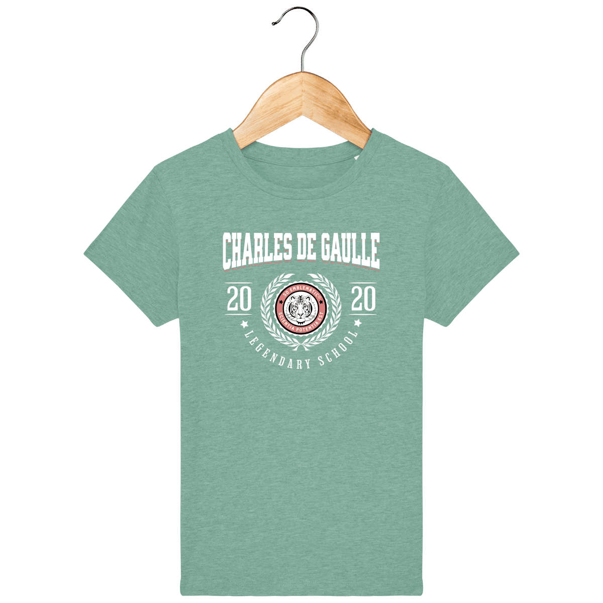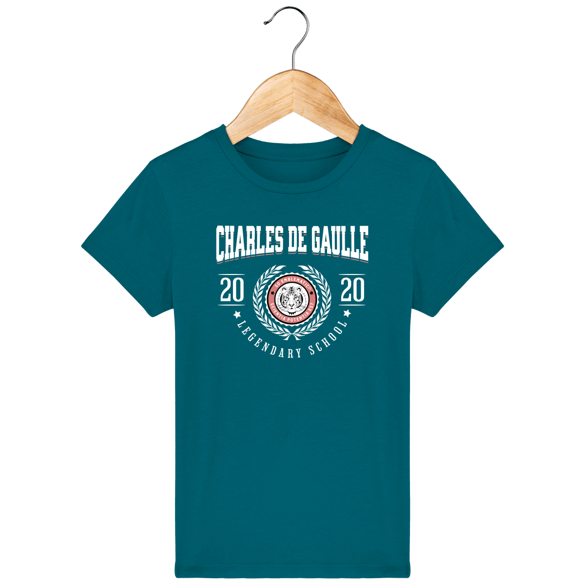 Tee Shirt Enfant Bio UNIVERSITY CHARLES DE GAULLE. T-shirt enfant iconique de la marque premium de mode éthique Stanley Stella. T-shirt enfant manches montées, col en côte 1×1, bande de propreté intérieur col dans la matière principale et surpiqûre double étroite en bas de manche et bas de corps. Composé de Jersey simple 100% COTON BIOLOGIQUE filé et peigné. Coupe normale. Grammage de 155 G/M².