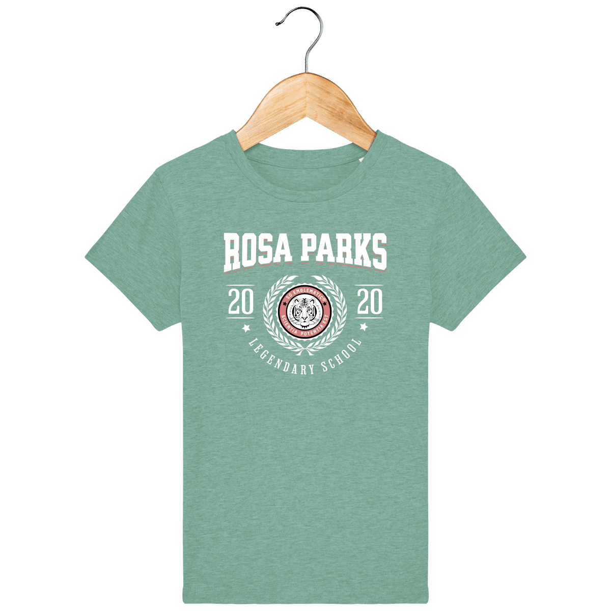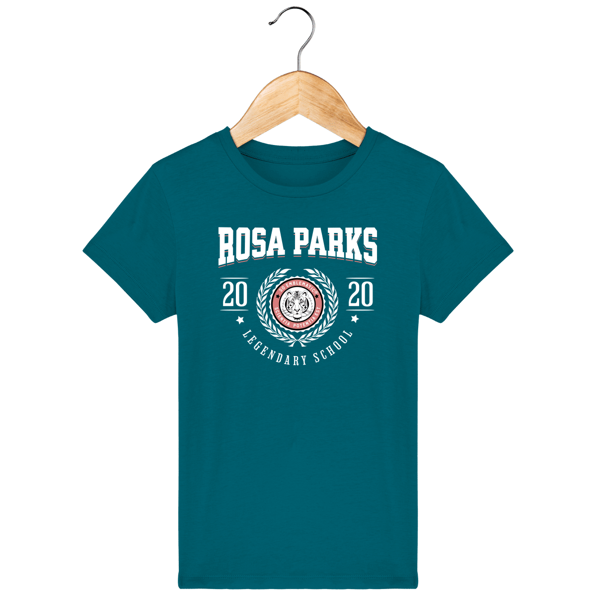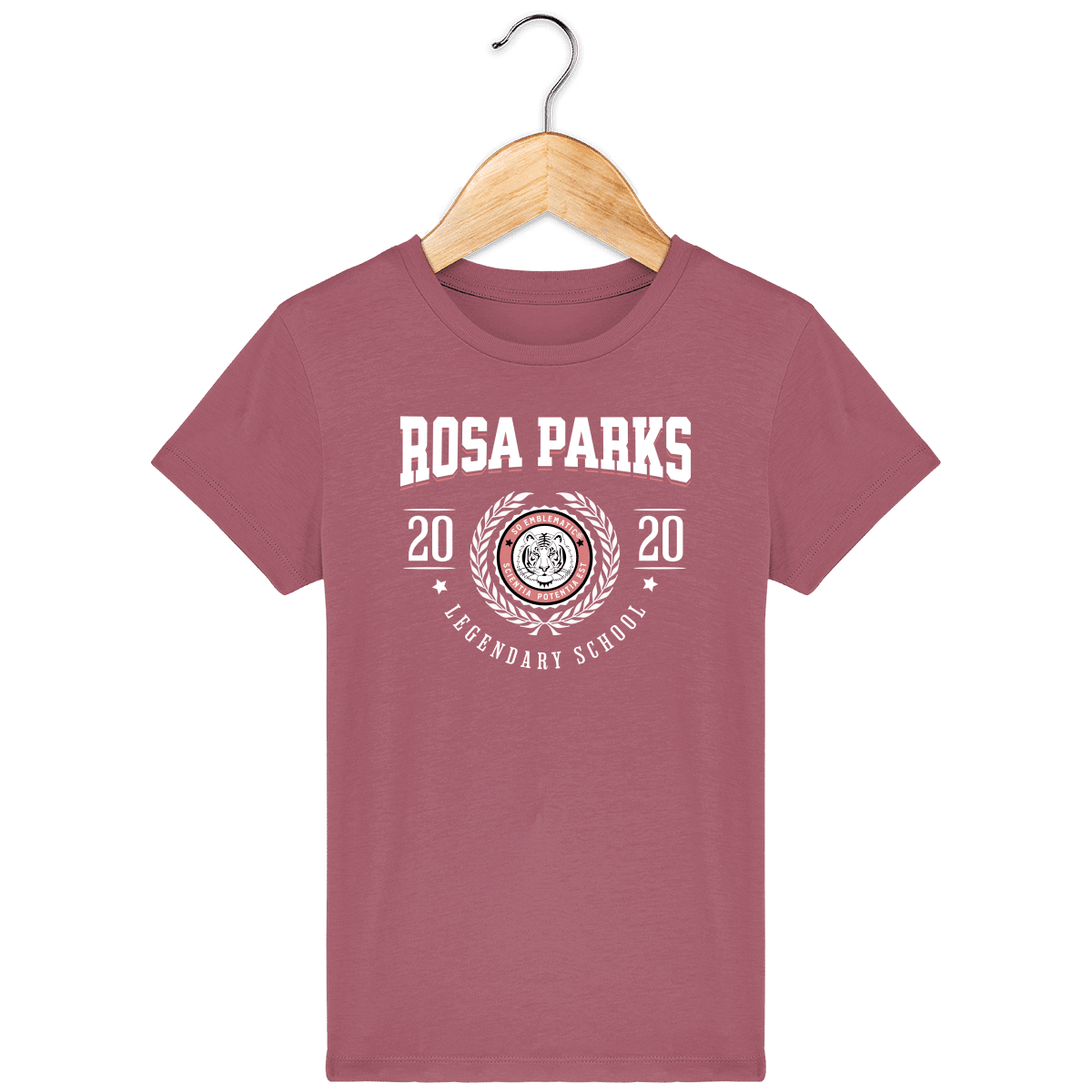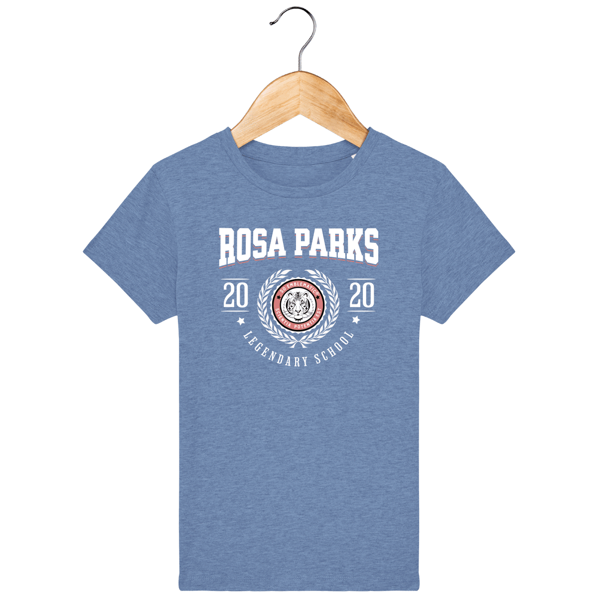 Tee Shirt Enfant Bio UNIVERSITY ROSA PARKS. T-shirt enfant iconique de la marque premium de mode éthique Stanley Stella. T-shirt enfant manches montées, col en côte 1×1, bande de propreté intérieur col dans la matière principale et surpiqûre double étroite en bas de manche et bas de corps. Composé de Jersey simple 100% COTON BIOLOGIQUE filé et peigné. Coupe normale. Grammage de 155 G/M².